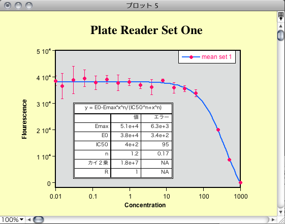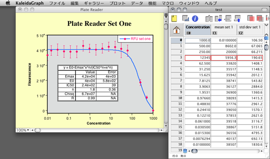 - 例題のプロットデータ [Plate Reader] を開き、このプロットの異なるデータを用意しました。