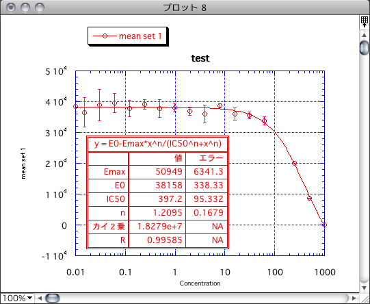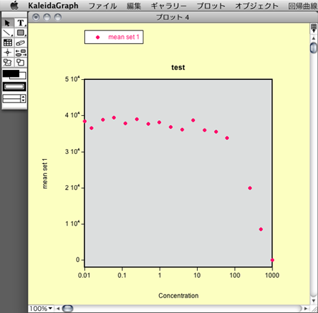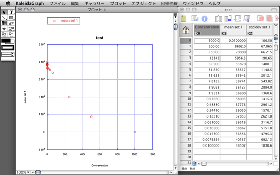 X 変数に Concentration、Y 変数に mean set 1 を選択