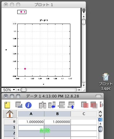 「プロット」保存時の日時が表記されたデータウィンドウ