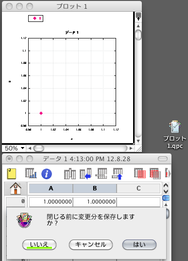 この時点で、このデータシートを閉じた時間のタイムスタンプがプロットファイルに記憶されています。(格納されているデータはプロット保存時の時間です。)