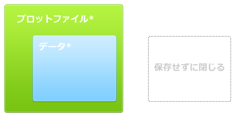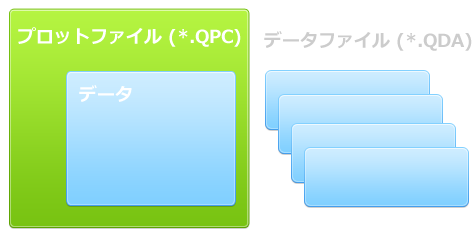このように、プロットファイル (*.QPC) を保存することによって、プロットファイルに格納されているデータを管理すると、データ保存における混乱を避けることができます。