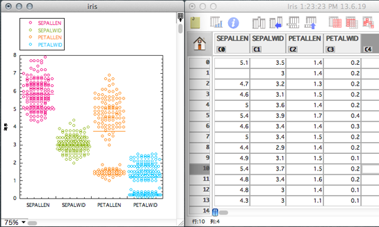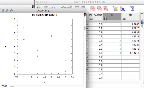 データシートの C5 列に計算結果が表示され、散布図が作成されます。