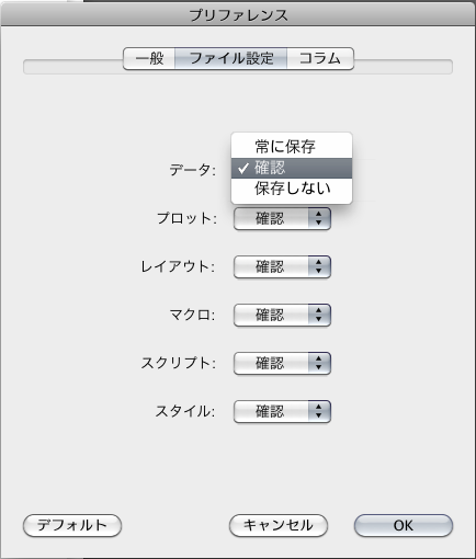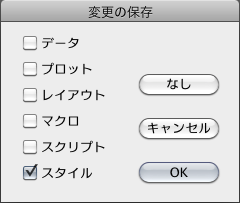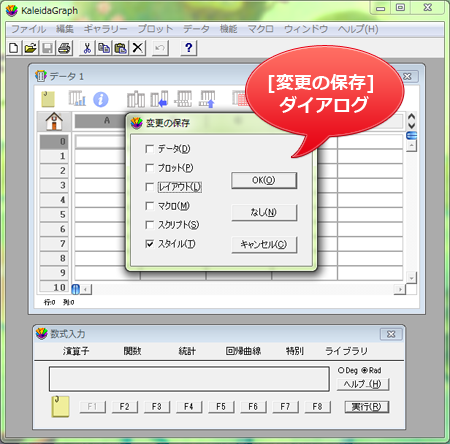 KaleidaGraph は、プログラム終了時に各種ファイルの変更を保存するかどうか確認します。
