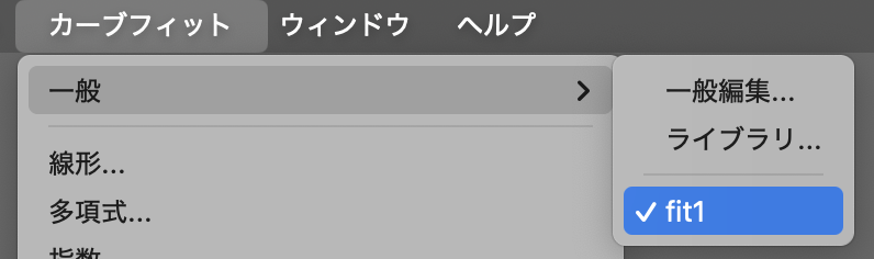 2. フィッティングのコマンドを実行します。一般メニューから fit1 を選択します。