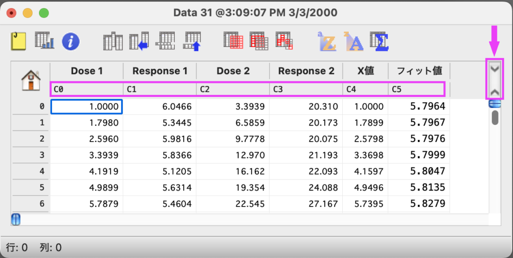 「列ヘッダ」 をクリックして表示された列番号 (C0~C5)