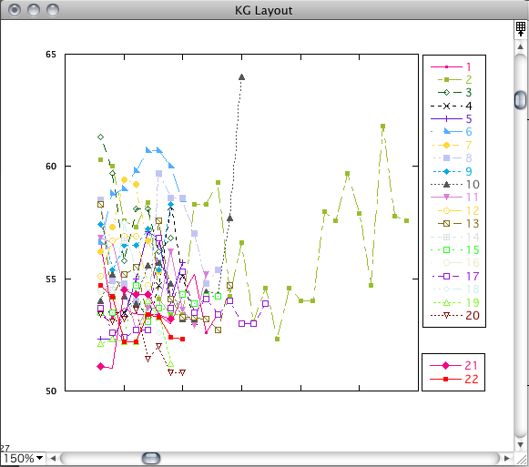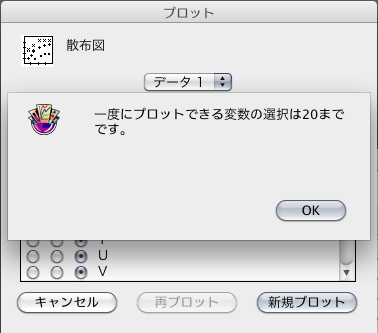 KaleidaGraph では、Y 変数に 21変数以上の変数を割り当てることができません。