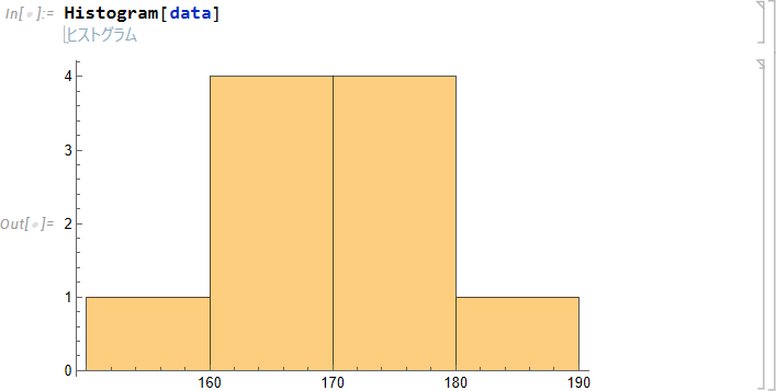 Mathematica の豊富な関数を使用してデータを簡単に要約することができます。次項から、10 名分の身長の計測データ (表1) を例として、各統計値を評価する手順を示します。