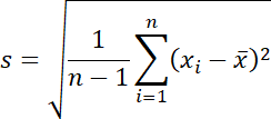 標準偏差は分布の散らばりの測度として分散と共に最もよく使用されます。不偏分散の正の平方根を取ることで標準偏差になります。