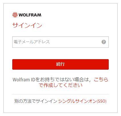 | ※ ご注意!Wolfram ID に使用するメールアドレスは、ご注文時にご連絡いただいたのメールアドレスをご使用下さい。 メールアドレスにご注文いただいた製品が紐付けられています。 |