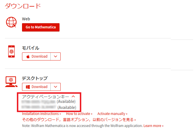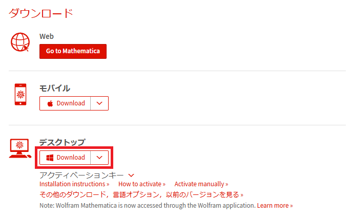 ネットワークライセンスのダウンロード方法については Mathematicaのダウンロードについて (ネットワーク) をご覧ください。