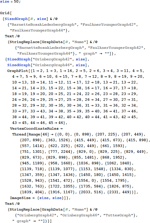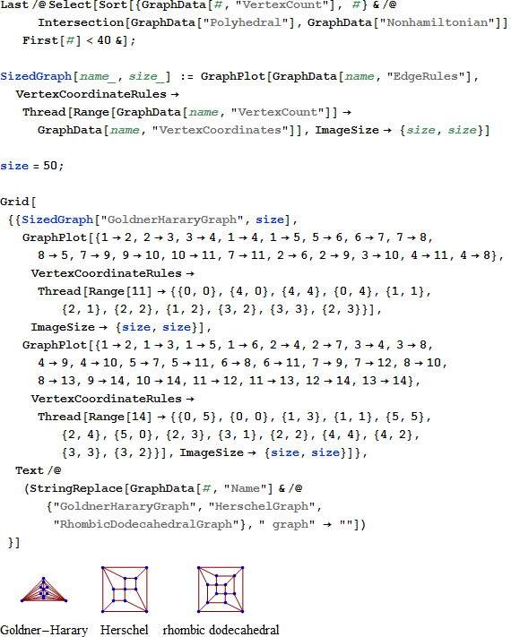 残念がら、ハミルトンの Icosian game には欠点があります。Hamiltonian path で繋がれない2つの頂点を選ぶことができます。改善するには Hamilton-connected graph を使います。Hamilton-connected graph はどの2つの頂点も Hamiltonian path によって繋がれるというグラフです [2]。 これらのグラフのさまざまな例は GraphData["HamiltonConnected"] で得られます。