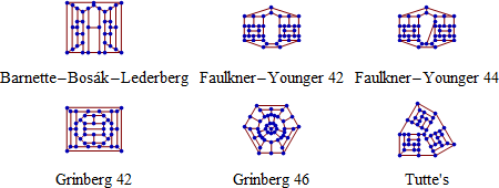 66年間、Tait の予想は破られませんでした。1946年に W.G.Tutte が現在 Tutte のグラフとして知られる最初の反例を見つけました。それ以降、いくつかのさらに小さな3次の Hamiltonian でない3次の多面体グラフが発見されました。最も小さいものは 1965年に見つかった Barnette-Bosak-Lederberg グラフです。それより7年早く Lederberg はノーベル生理学・医学賞を得ました。