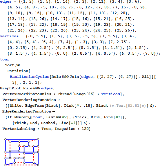 頂点 2 と 6 を繋ぐ見えない頂点を追加するという方法を使うことで、このパスを Mathematica で見つけて、描画することができます。