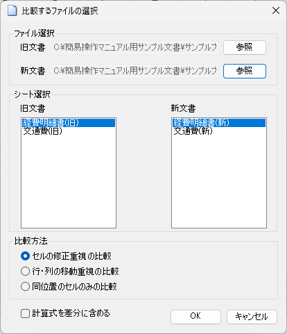 ※ セル内のデータの形式によっては、比較精度が低下する場合があります。