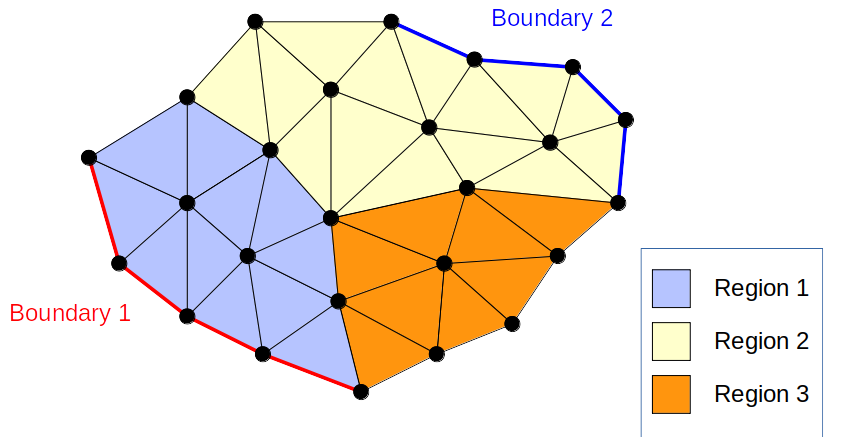 他にも、境界は表面(3D シミュレーション)、曲線(2D シミュレーション)、点(1D シミュレーション)となり、数字や文字列でラベルされます。QTCAD で微分方程式を解く際は、これらの構造エンティティを境界条件を特定するのに用います(例:ポアソン方程式)。
