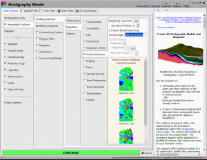 RockWorks Playlist を使えば容易に自動化を行うことができます。ボタンをクリックして、現在の Playlist にプログラムを追加するだけです。その後、ボタンをクリックすると、作成した Playlist が実行され、ランチの合間にモデル、マップ、ダイアグラムが作成されます。利用できるアイテム数は、Basic (5 アイテム), Standard (5 アイテム), Advanced (無制限) です。