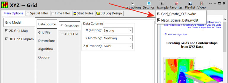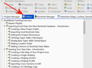 - Videos タブ:RockWorks 教育用ビデオのライブラリ全体にアクセスできます。