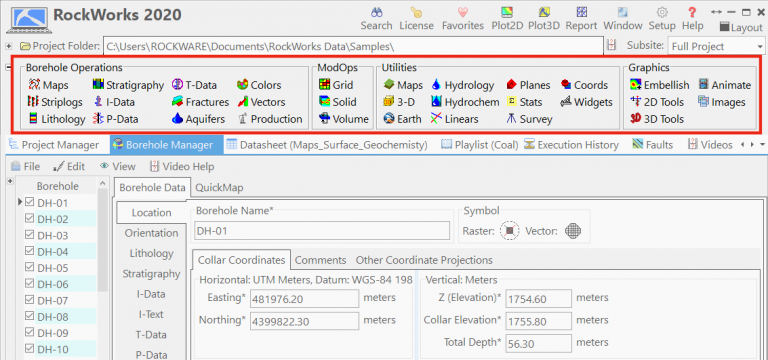 - 同僚やクライアントが簡単に利用できる Turn-key ツール:RockWorks の操作の習得にかかる時間を節約できます。