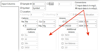 - HydroChem メニューの各種プログラム (Durov, Piper, Schoeller, Stiff, Stiff Map, Ion Balance, Total Dissolved Solids, Ion Report) で共通する Input Columns サブメニューに、インプットデータの単位を mg/L (1リットル当たりのミリグラム) か mEq/L (1リットル当たりのミリ当量) に指定できるオプションを追加しました。