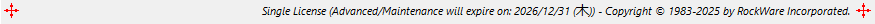 - ライセンスのステータス、著作権情報が表示されます。また、画面の最大化ツールも含まれます。
