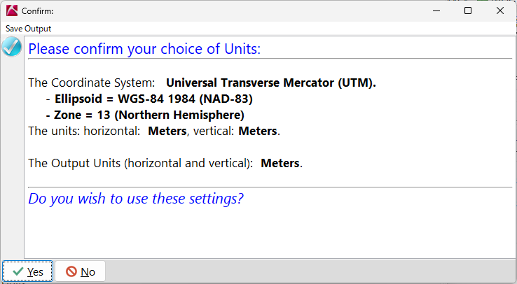 - UTM の単位が Meters (メートル) に設定されていることを確認します。