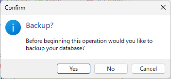 - データベースをバックアップするかの確認画面が表示されます。