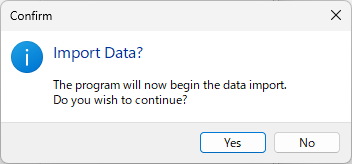 - ウィンドウ下部の Import ボタンをクリックします。確認メッセージが表示されたら、Yes をクリックして続行します。