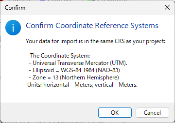 - Datum が WGS-84 1984 、Zone が 13 (Northern Hemisphere) に設定されていることを確認します。