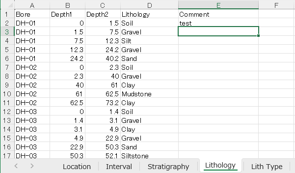 Keyword は、インポートした Excel ファイルの Lithology シートに記載されている名前から追加されています。