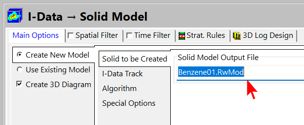 このウィンドウの左側の Data ツリーで、Data の下に Benzene Soil Model (ベンゼン土壌モデル) がリストされていることに注意してください。