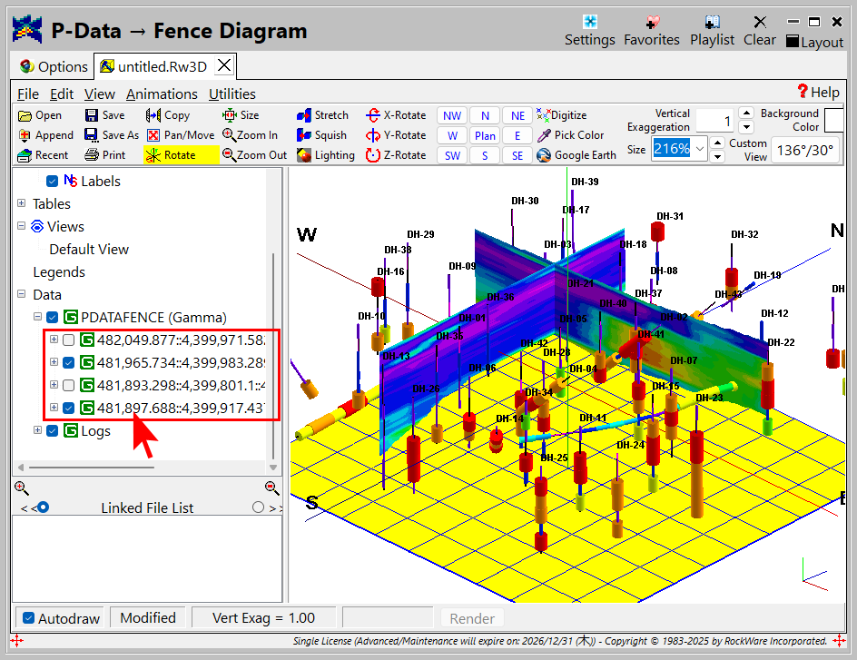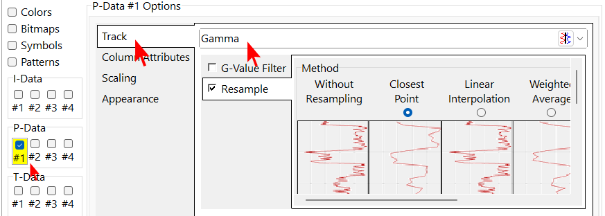 両方の凡例がリストされていることに注意してください。チェックボックスを使ってオン/オフを切り替えることができます。岩相の凡例を上に、ガンマの凡例を下に移動して、重ならないようにします。