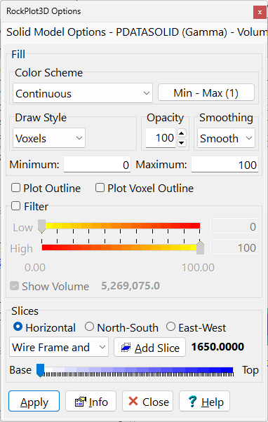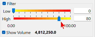 Iso-Level を変更すると、それに応じて Volume 値も変化することに注目してください。プログラムは表示されているマテリアルの Volume を自動的に計算します。