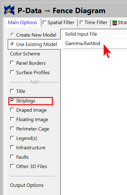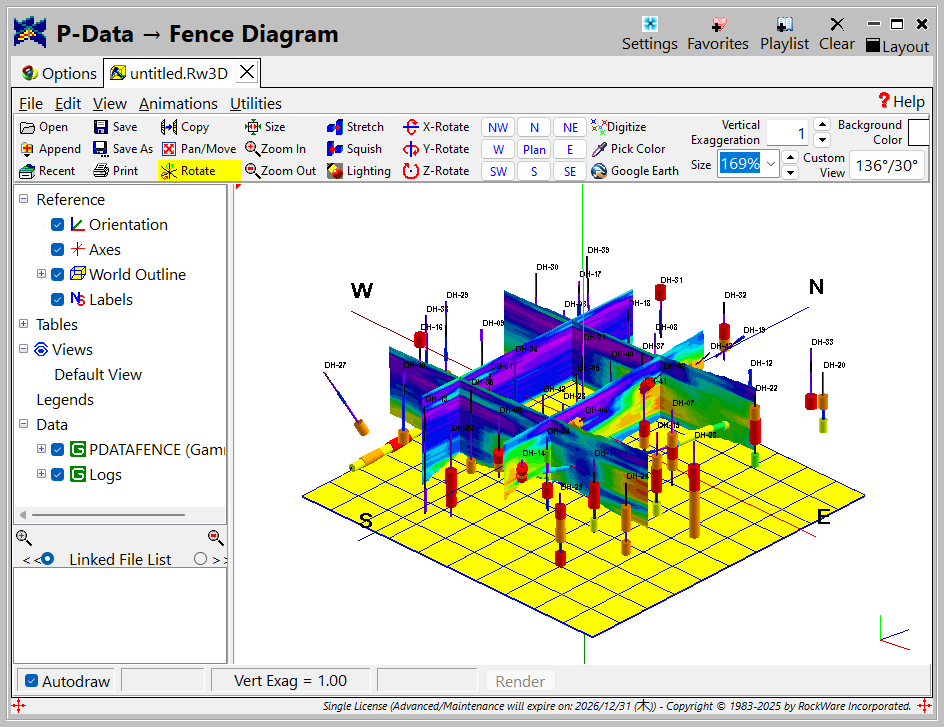 結果として得られるダイアグラムでは、3D ログとフェンス パネルに、カラーフィル テーブルで指定したカラースキームが使用されています。
