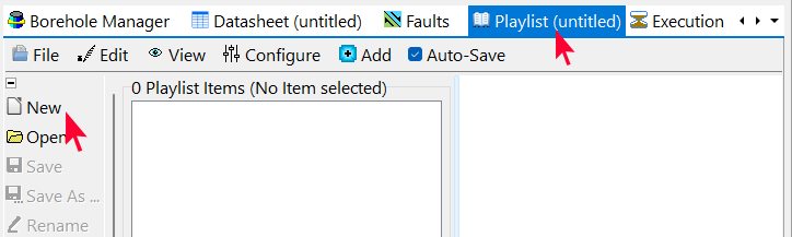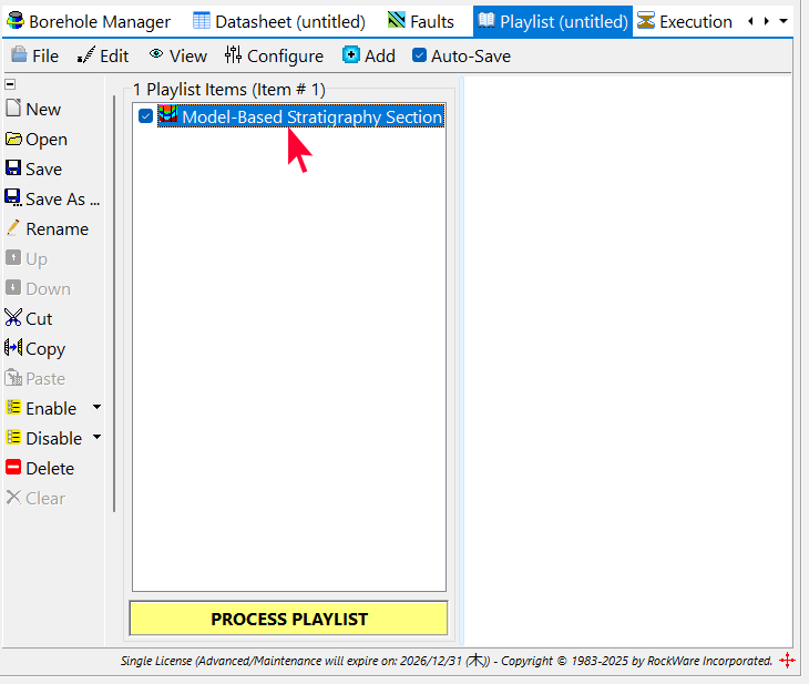 - RockWorks のメインウィンドウにある Playlist タブをクリックします。