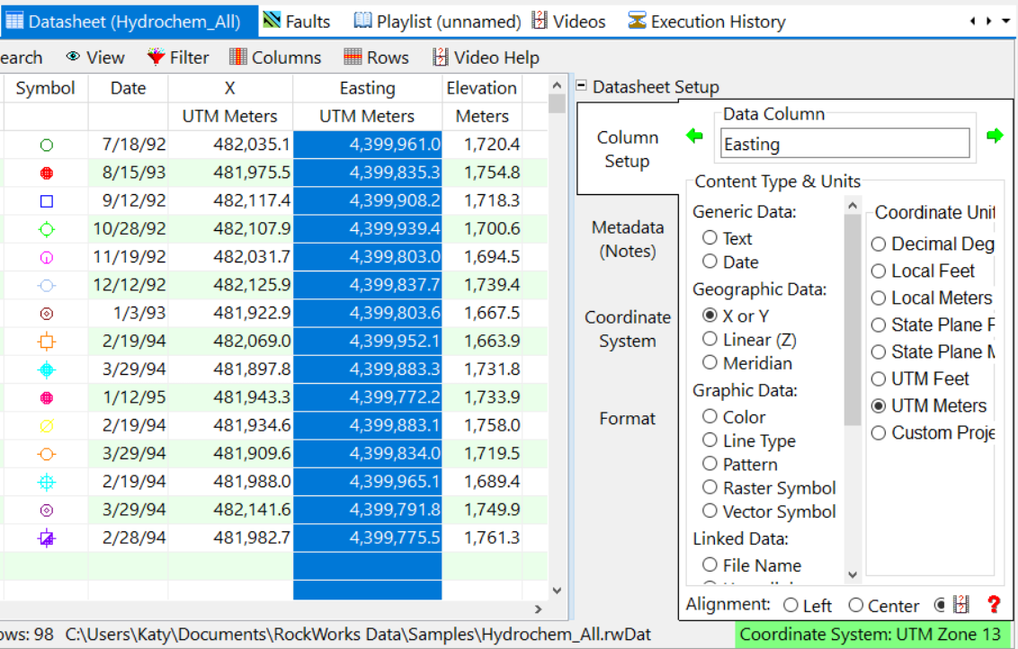 - Content Type が X or Y に設定され、Coordinate Units (座標単位) が UTM Meters に設定されていることを確認してください。