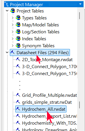 - リストにある Hydrochem_All.RwDat ファイルをダブルクリックして開きます。RwDat はデータシートに保存されるファイルに使用される拡張子です。