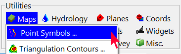 - RockWorks のメインウィンドウの上部にあるアイコン メニューの Utilities セクションで、Maps | Point Symbols オプションを選択します。