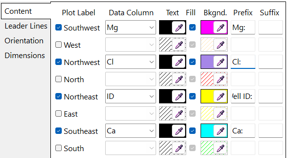 Southeast ラベルにチェックを入れて、カチオン列として Ca を選択する。Background Color に適当な不透明なカラーを指定し、プロットに表示される濃度ラベルの Prefix に、例えばカルシウムであれば Ca: と入力する。