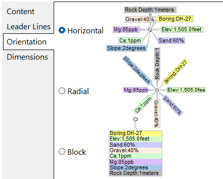- Orientation タブで、ラベルの表示法を Horizontal に指定します。