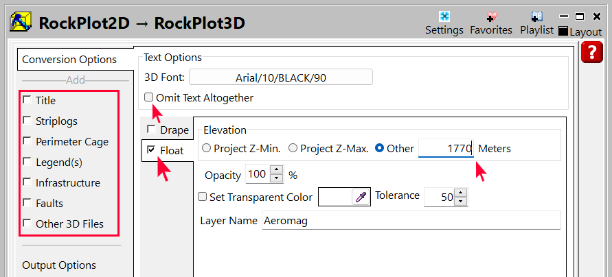 - その他のマップレイヤーのチェックをすべて外します:Striplogs → Other 3D Files