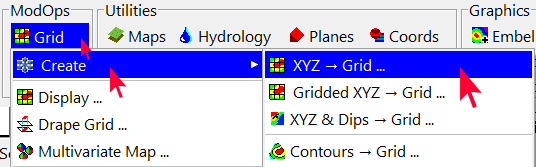 - メニューから ModOps | Grid | Create | XYZ → Grid を選択します。