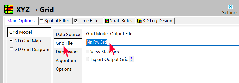 - Grid File を選択し、出力するファイルの名称を Na.RwGrd に指定します。このファイル名には大文字と小文字を使用できますが、必須ではありません。