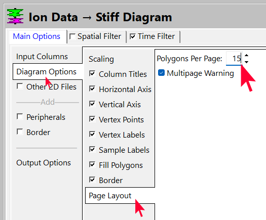 - Diagram Options にどのようなものがあるか確認してください。Page Layout | Polygons Per Page を 15 に指定します。これによってすべてのサンプルが1つのダイアグラムに収まるようになります。