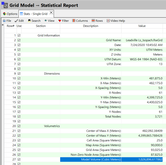得られるレポートには、グリッドに関する様々な情報が表示されます。このグリッドの “Model Volume” とは何でしょう?