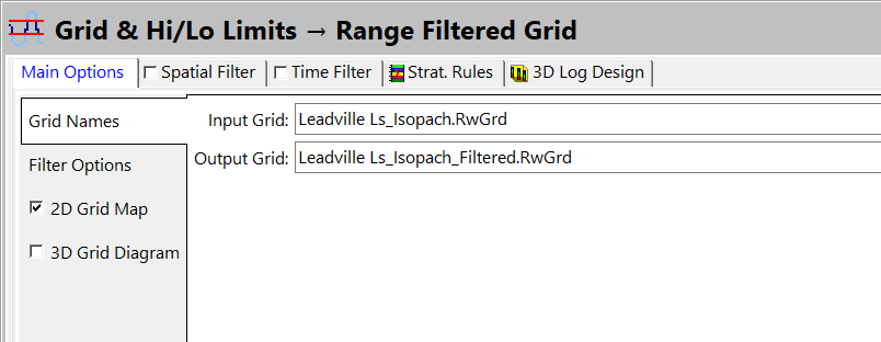 - Output Grid を次のように設定します:Leadville Ls_Isopach_Filtered.RwGrd