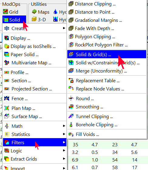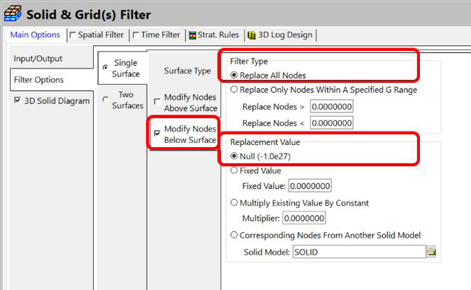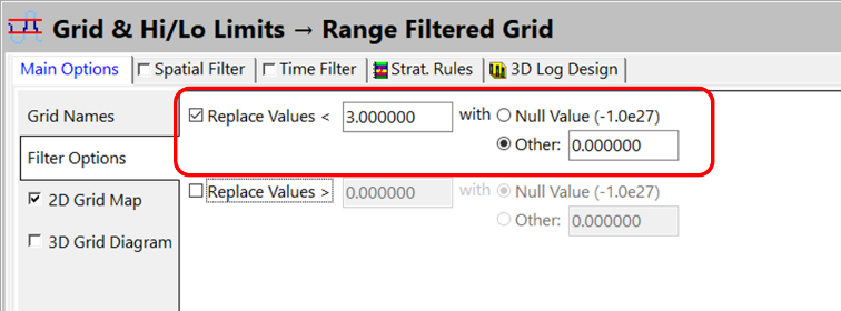 このカットオフに基づいてグリッド モデルの値を再割り当てするには、Grid | Filters メニューを使用します。