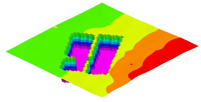 領域内または領域外(敷地境界線、掘削ピットなど)のグリッドノードに 0 などの数値を割り当てる必要がある場合があります。このステップでは、ポリゴンフィルターを使用して、モデル内の掘削対象となるマテリアルを分離します。