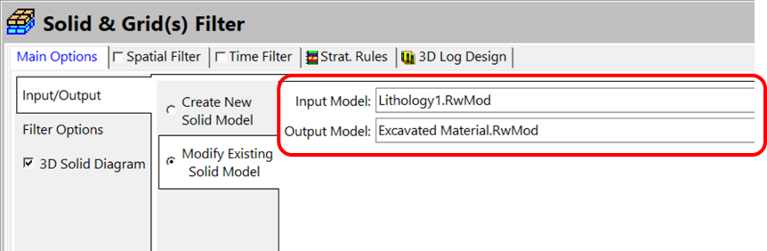 - Input/Output タブで、Modify Existing Solid Model を選択します。