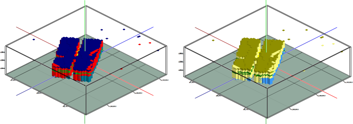 次に、掘削が必要なマテリアルを分離し、マテリアルの体積を推定します。初期モデルには、前の演習で作成した岩相モデルを使用します。