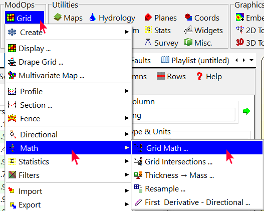 - ModOps ツールにある Grid | Math | Grid Math を選択します。